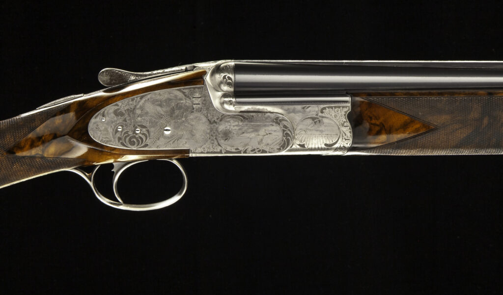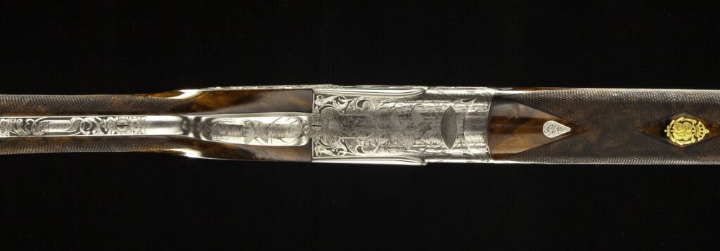 EXHIBITION TURKISH WALNUT, GOLD CREST, LEATHER COVERED PAD, CASE