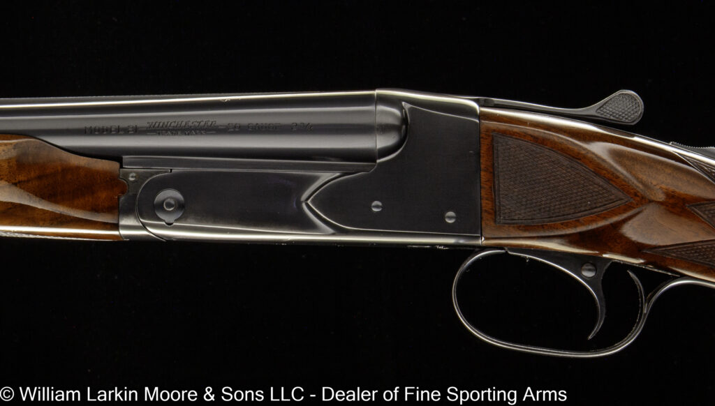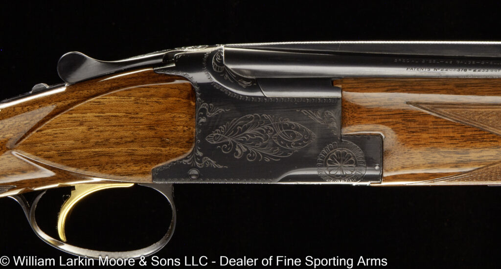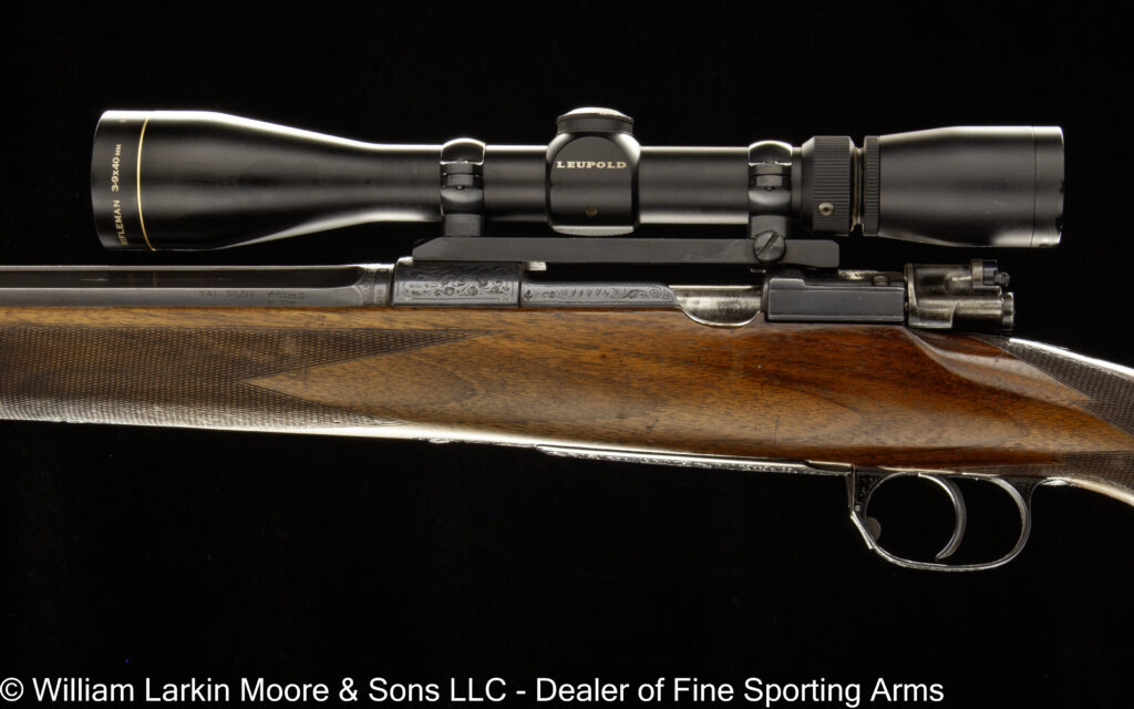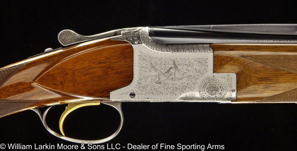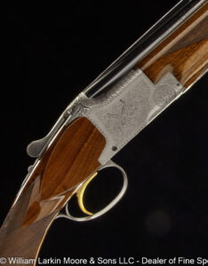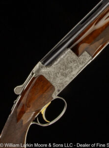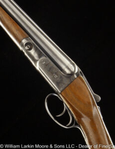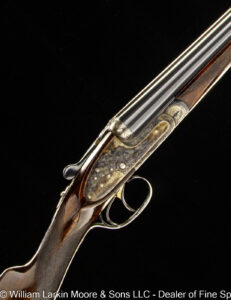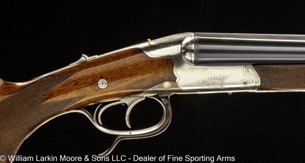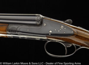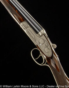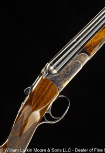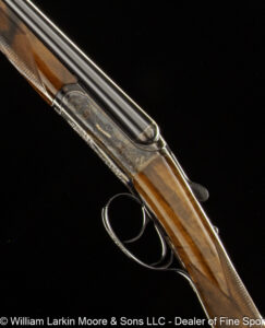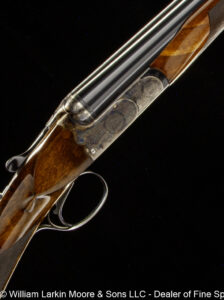 Any Rib Type: 000." 1/4 Rib w/ Sights 1/4 Rib with express sights 1/4 Rib witth express sights (1 standing 2 folding) 7LB 15 OZ Beaver Tail Forearm Casehardened EXC. Condition Field Style Game Scene Cameos Engraving, Unusual non-standard engraving with bird scenes instead of dog scenes https://williamlarkinmoore.com/wp-content/uploads/2023/09/IMG_6833-2-239x300.jpg https://williamlarkinmoore.com/wp-content/uploads/2024/03/IMG_7872-2-245x300.jpg https://williamlarkinmoore.com/wp-content/uploads/2024/09/IMG_9426-2-222x300.jpg https://williamlarkinmoore.com/wp-content/uploads/2024/10/IMG_9579-242x300.jpg https://williamlarkinmoore.com/wp-content/uploads/2025/02/IMG_0262-1024x777.jpg https://williamlarkinmoore.com/wp-content/uploads/2025/03/IMG_0631-2-749x1024.jpg https://williamlarkinmoore.com/wp-content/uploads/2025/08/IMG_1837-1024x611.jpg https:\/\/williamlarkinmoore.com\/wp-content\/uploads\/2021\/12\/IMG_1712-2.jpg"" https:\/\/williamlarkinmoore.com\/wp-content\/uploads\/2022\/10\/IMG_4453-300x89.jpg""]" https:\/\/williamlarkinmoore.com\/wp-content\/uploads\/2022\/10\/IMG_4512-300x100.jpg""]" https:\/\/williamlarkinmoore.com\/wp-content\/uploads\/2022\/11\/IMG_4788-300x181.jpg"" https:\/\/williamlarkinmoore.com\/wp-content\/uploads\/2022\/11\/IMG_4867-300x153.jpg""]" https:\/\/williamlarkinmoore.com\/wp-content\/uploads\/2023\/05\/IMG_5878-300x148.jpg""]" https:\/\/williamlarkinmoore.com\/wp-content\/uploads\/2023\/09\/IMG_6611-208x300.jpg"" https:\/\/williamlarkinmoore.com\/wp-content\/uploads\/2023\/12\/IMG_7273-2-300x157.jpg"" https:\/\/williamlarkinmoore.com\/wp-content\/uploads\/2025\/02\/IMG_0361-1024x457.jpg""]" Level File Cut Rib Level Flat Rib Level Flat Rib with express sights (1 standing 2 folding) Level Flat Rib with express sights(1 standing 2 folding) LEVEL Matted Concave Rib LOP 14-1/8\"",https://williamlarkinmoore.com/wp-content/uploads/2022/10/IMG_4185-2-258x300.jpg,[""https:\/\/williamlarkinmoore.com\/wp-content\/uploads\/2022\/10\/IMG_4185-2-258x300.jpg"" Matted Concave Rib Matted Concave Rib with express sights Matted Level Rib OCTIGONE BBL. W/ SIGHTS ROUND BBL. ROUND BBL. W/ SIGHTS SCHMIT & BENDER 4X36 SCOPE IN QD MOUNTS, BANDED FRONT SIGHT WITH SHIELD, BANDED SLING SWIVEL, FANCY WALNUT, LEATHER COVERED PAD, SCHMIT & BENDER SCOPE SIMMONS Vent Rib SMOOTH CONCAVE Smooth Concave Rib SOLID RIB Solid ribs Splinter Forearm Splinter Forearm with cross pin release ST (Single) Straight Grip Tyrolian comb Vent Rib Vent Rib, Vented side ribs ["https:\/\/williamlarkinmoore.com\/wp-content\/uploads\/2024\/11\/IMG_9883-802x1024.jpg","https:\/\/williamlarkinmoore.com\/wp-content\/uploads\/2024\/11\/IMG_9885-1024x759.jpg","https:\/\/williamlarkinmoore.com\/wp-content\/uploads\/2024\/11\/IMG_9886-1024x228.jpg","https:\/\/williamlarkinmoore.com\/wp-content\/uploads\/2024\/11\/IMG_9882-1024x218.jpg","https:\/\/williamlarkinmoore.com\/wp-content\/uploads\/2024\/11\/IMG_9884-1024x744.jpg","https:\/\/williamlarkinmoore.com\/wp-content\/uploads\/2024\/11\/IMG_9887-1024x687.jpg"] ["https:\/\/williamlarkinmoore.com\/wp-content\/uploads\/2025\/03\/IMG_0624-1-1024x490.jpg","https:\/\/williamlarkinmoore.com\/wp-content\/uploads\/2025\/03\/IMG_0621-1-1024x631.jpg","https:\/\/williamlarkinmoore.com\/wp-content\/uploads\/2025\/03\/IMG_0625-1-1024x213.jpg","https:\/\/williamlarkinmoore.com\/wp-content\/uploads\/2025\/03\/IMG_0623-1-1024x279.jpg"] ["https:\/\/williamlarkinmoore.com\/wp-content\/uploads\/2025\/03\/IMG_0732-2-753x1024.jpg","https:\/\/williamlarkinmoore.com\/wp-content\/uploads\/2025\/03\/IMG_0729-1024x696.jpg","https:\/\/williamlarkinmoore.com\/wp-content\/uploads\/2025\/03\/IMG_0732-1024x218.jpg","https:\/\/williamlarkinmoore.com\/wp-content\/uploads\/2025\/03\/IMG_0730-1024x201.jpg","https:\/\/williamlarkinmoore.com\/wp-content\/uploads\/2025\/03\/IMG_0731-1024x402.jpg","https:\/\/williamlarkinmoore.com\/wp-content\/uploads\/2025\/03\/IMG_0733-1024x541.jpg"]