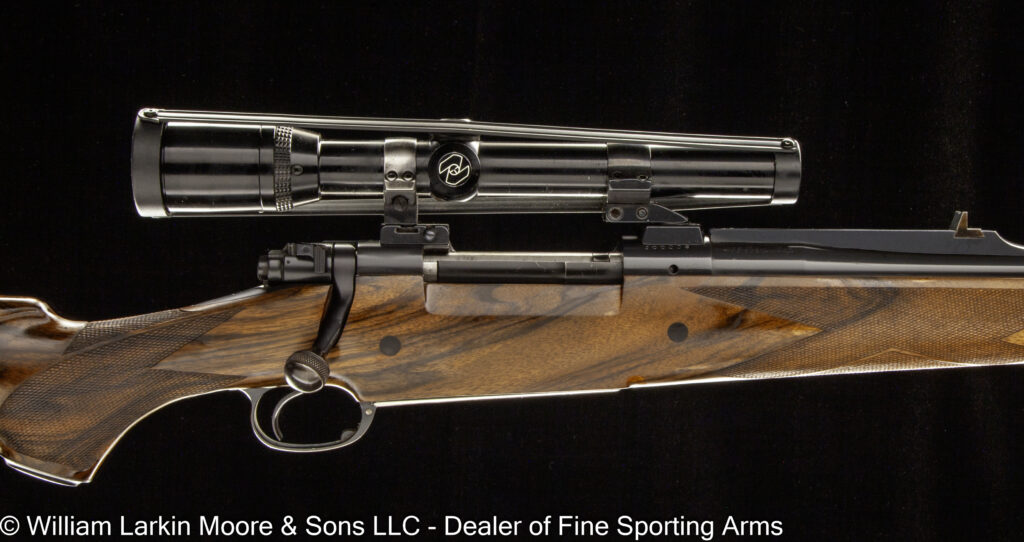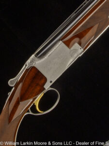 Any Other Options: 3\" CH. ACTION SHAPED LIKE SLE W/ FANCY SCALLOPING, ARTICULATED TRIGGER, PRETTY WOOD, CHECKERED BUTT ADJ. COMB, CASED WITH ACCESSORIES ARCADED FENCES, DROP POINTS, PRETTY FRENCH WALNUT, BUTT PLATE ARTICULATED TRIGGER, AUTO SAFETY, PRETTY WOOD, CHECKERED BUTT ARTICULATED TRIGGER, PRETTY WOOD, CHECKERED BUTT ARTICULATED TRIGGER, PRETTY WOOD, MONACO TYPE CHECKERING, CHECKERED BUTT ARTICULATED TRIGGER, UPGRADED TURKISH WALUNT, CHECKERED BUTT, MAKER\'S ABS CASE AUTO EJECTOR, GRIP CAP, PRETTY WOOD, BUTT PLATE, CASED Back Action, WC Scott patent Crystal indicator locks, Automatic safety, Henry type rifling, BANDED SWIVEL AND FRONT SIGHT, SCOPE RINGS, PAD BUSHNELL 3X9 SCOPE BUTT PLATE BUTT PLATE, 2-3/4\" CH." BUTT PLATE, CASE BUTT PLATE, LEVER FORARM RELEASE, TRAP GRIP CAP, SIGHTS BUTT PLATE, NO. 1 FRAME, TWIST BBL.S, FISHTAIL TOP-LEVER BUTT PLATE, SIGHTS CASE WITH ACCESSORIES CASE, BUTT PLATE, 2-3/4\" CH Checkered Butt, Pretty Turkish walnut, WLM ABS case CHECKERED BUTT, PRETTY WALNUT STOCK CHEEK PIECE, PRETTY WOOD, CLAW MOUNT BASES,, BULLET TRAP CHEEK PIECE, PRETTY WOOD, PAD, BULLET TRAP Cocking indicators, Automatic safety, Sideclips, Ejectors, 2 3/4\" chambers" COCKING INDICATORS, GOLD PACKAGE, EXHIBITION QUALITY WALNUT, CASED Coin Finish Crack in stock at wrist DAC 1-1/2 DAH 2-5/8 LOP 15-7/8 C/O 1/4 DECELLARATOR PAD, LIGHT WEIGHT GUNS Deluxe ABS case Detachable locks, Fitted Briley sub ga tube set in 28ga with chokes, Extra wood set for left hand shooter, FAMARS aluminum travel case, 2 3/4\" chambers" DIAMOND GRIP, GOLD CROWN, GOLD CREST, PRETTY WOOD, CASE DOGS HEAD BUTT PLATE Doll\'s head, Automatic safety, bSide clips, Drop points, Leather covered pad, Gold oval, Ring type sling swivel attachments, Nicely figured wood, Mfg 1910 DROP TRIGGER GROUP, GRIP CAP TURKISH WALNUT, CHECKERED BUTT, CASED Engraved and damascened, Embossed pigskin presentation case with satin lining EXC. Condition Extra fancy Turkish walnut, ABS cases FACTORY INSTALLED RED DOT BASE/MOUNT Factory leather case, 3\" chambers" FANCY ENGLISH WALNUT Fancy Turkish walnut, Deluxe ABS case FANCY TURKISH WALNUT, DROP POINTS, GOLD PACKAGE Fine Scroll Engraving fluid steel bbl.s, grip cap, pretty wood, butt plate Game Scene Cameos Engraving in Gold GOLD OVAL, PRETTY WOOD, CHECKERED BUTT, ABS CASE GOLD PACKAGE, EXHIBITION WALNUT, ABS MAKER\'S CASE Gold plated lock parts, Purdey type 3rd fastener, 2 1/2\" chambers" Good bore GRIP CAP FE TIP PAD LEUPOLD M55 4X SCOPE GRIP CAP, BOSS FE METAL, PRETTY WOOD, CASE GROVED RECEIVER, SIGHTS, BUTT PLATE https://williamlarkinmoore.com/wp-content/uploads/2022/09/IMG_4139-2-244x300.jpg https://williamlarkinmoore.com/wp-content/uploads/2023/10/IMG_6953-2-208x300.jpg https:\/\/williamlarkinmoore.com\/wp-content\/uploads\/2021\/12\/IMG_1709-scaled.jpg"" https:\/\/williamlarkinmoore.com\/wp-content\/uploads\/2022\/10\/IMG_4185-300x80.jpg"" https:\/\/williamlarkinmoore.com\/wp-content\/uploads\/2022\/11\/IMG_4786-300x68.jpg"" https:\/\/williamlarkinmoore.com\/wp-content\/uploads\/2023\/09\/IMG_6615-300x64.jpg"" INLAYS, LYMAN AMERICAN 4X SCOPE, GRIP CAP, CHEEK PIECE, FE TIP, PAD KICK-EZE PAD Large Scroll Engraving LEUPOLD SCOPE Lock is dated 1865, barrel is dated 1863 LOP 14-3/16 NAME IN GOLD, PRETTY WOOD, PAD, CASE Near EXC. Condition NICE WOOD, PAD PAD PAD, CASE PAD, DELGREGO REFINISH PAD, PRETTY WOOD PAD, PROFESSIONAL REFURBISHED - SLEEVED PAD, WEAVER SCOPE BASES PAD. 1-1/4 OZ PROOFS, BORE DIA RT/LT .734/.735\" PEEP SIGHT, BUTT PLATE PRETTY WOOD, CHECKERED BUTT, GOLD OVAL, CASE Pretty wood, checkered butt, Nizzoli leather case PRETTY WOOD, CHWCKERED BUTT, CASED PRETTY WOOD, GRIP CAP, PAD PRETTY WOOD, OVERSIZED PAD PRETTY WOOD, PAD PRETTY WOOD, PAD, CASE Purdey Style Engraving PURDEY THIRD FASTENER, CHECKERED BUTT RAISED COCKING INDICATORS, YIELDING TRIGGER, LEATHER COVERED PAD, UPGRADED TURKISH WALNUT RAISED COCKING INTICATORS, DIAMOND SHAPE GRIP, UPGRADED TURKISH WALNUT, CHECKERED BUTT, PIOTTI ABS CASE, LIGHT WEIGHT Raised Vent Rib RECEIVER SIGHT, BUTT PLATE REPLACEMENT SILVERS PAD, NICE OLD UNTOUCHED GUN, BORES .733\" RT/LT Rib extension 3rd fastener, 2 3/4\" 1 1/4oz proof RIFLE BUTT RISING BITE ACTION, PUSH BUTTON OPENING, DROP POINTS, PRETTY WOOD, PAD, SLING SWIVELS ROLLED EDGE GUARD BOW, GOLD CROWN ON TOP LEVER, CHECKERED BUTT, EXHIBITION TURKISH WALNUT, IN MAKER\'S ABS CASE Safety trigger, box, papers, holster, 2 magazines Sculptured and scalloped action shaping, Extra fancy Turkish walnut Sculptured Grip Cap, Pretty Turkish walnut, WLM ABS case SDE-CLIPS, CROSS-BOLT, GRIP CAP, CHEEK PIECE, PAD select walnut SHIELD, BUTT PLATE SIGHS, BUTT PLATE SIGHTS, BOX ETRA MAGS SIGHTS, BUTT PLATE SIMMOS 4-12X SCOPE Single shot cartridge follower, 2oz trigger, Leupold 6.5x20 scope in Buehler SKELETON BUTT SLING Sling swivel eyes, Rebounding hammers, Greener crossbolt Splinter Forearm SQUARE BRIDGE, QD RINGS, SWAROVSKI 3-9X SIGHT, PAD, PRETTY WOOD, GRIP CAP, FORE END TIP STEEL BUTT PLATE, HORN FE TIP Stevens Adjustable rear sight, Tang Safety, Nizzoli Case TANG SIGHTS TASCO SCOPE 4X32, WEAVER MOUNTS TIMNEY TRIGGER, WARNE BASES, PAD trap butt, sights TURKISH WALNUT ULTRA-LIGHT, 2-1/2\" CHAMBERS Upgraded Turkish walnut Upgraded Turkish Walnut, Ceckered butt, H&H type hand detachable locks, Articulated trigger, Autosafety Upgraded wood, ABS case Vented side ribs, Deluxe ABS case WINCHESTER PAD ["https:\/\/williamlarkinmoore.com\/wp-content\/uploads\/2023\/12\/IMG_7558-300x138.jpg","https:\/\/williamlarkinmoore.com\/wp-content\/uploads\/2023\/12\/IMG_7555-300x201.jpg","https:\/\/williamlarkinmoore.com\/wp-content\/uploads\/2023\/12\/IMG_7559-300x69.jpg","https:\/\/williamlarkinmoore.com\/wp-content\/uploads\/2023\/12\/IMG_7556-300x78.jpg","https:\/\/williamlarkinmoore.com\/wp-content\/uploads\/2023\/12\/IMG_7557-300x168.jpg"]